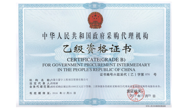 政府采購(gòu)乙級(jí)資質(zhì)證書(shū)